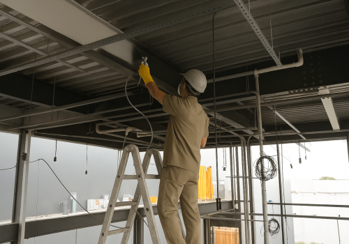 Serviço completo de proteção passiva contra fogo de estruturas metálicas aparentes com aplicação de tinta intumescente