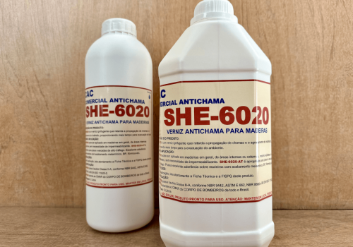 SHE-6020 é um verniz antichama incolor para diversos tipos de madeiras. Pode ser aplicado em pisos, escadas, palcos, paredes, tetos, forros, mobiliários etc.